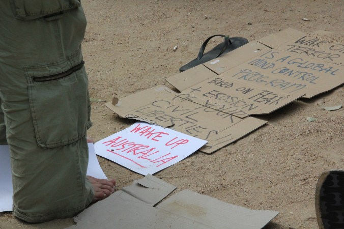 Poets, punks, anarchist dogs (“no leads, no leaders!”), children, environmentalists,performance artists,film makers, hipsters, unionists, curious teenagers joggled alongside one another, took to the mic, workshopped, assisted organisers, played drums and marched in support of others (BDS protestors) who had previously arranged a march. It became more and more obvious as the day continued that peacefully and together we have real power. Even though in Melbourne they are only just picking up the reins started with the Madrid Occupation that started in May, it feels like this movement has the potential to facilitate change. No other reason for all the police, surveillance and undercover cops in the crowd unless the occupation movement was a real challenge to the inequitable status of now.